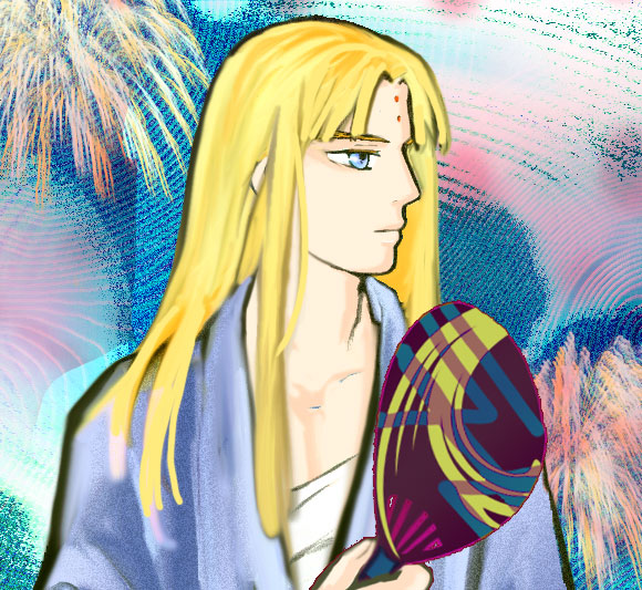 メモ絵:同じえに少し変えてジャパニーズ調うちわに花火