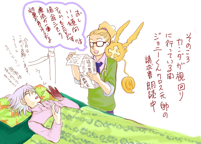 メモ絵;アレン君の寝ごと「馬鹿師匠!借金だけ(請求書)残して消えるな―」