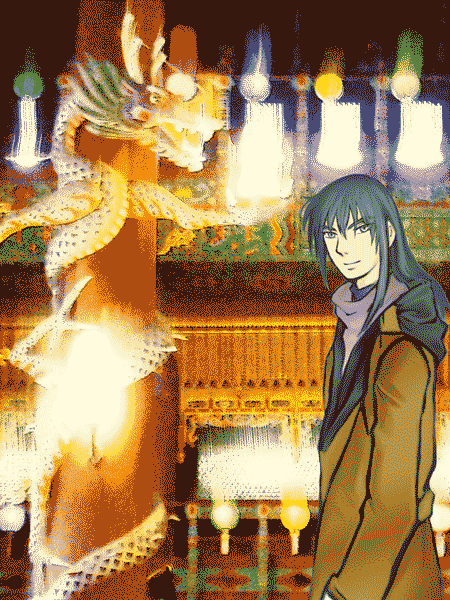 メモ絵:最後の日はフリータイムのオプションツアーに参加した時立ち寄った寺院(名前忘れた)のお堂(程良く中間色の色で構成)の中の柱に竜が巻きついてる姿に圧倒、とーっても美麗な竜神さまでした、でその時に撮った写真を神田くんと一緒に激写。
